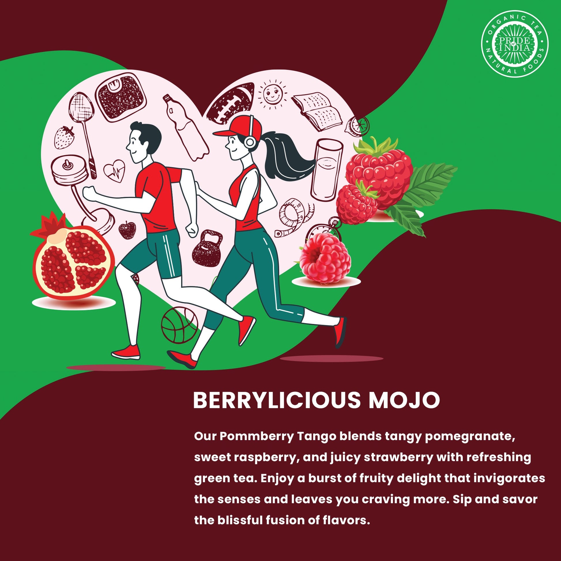 Pride Of India brings naturally grown food and herbal products from India that enhance the overall health of the human body through the centuries long tradition of consuming pure foods from farm to table. We are a family owned company and source all our ingredients from direct farms in order to preserve the quality as well as freshness of all our products. We value sustainable farming and aim to build a company that benefits the entire food chain from the grass root level upwards. We are committed to sourcing the freshest Green tea, handpicked from farms situated around the Indian subcontinent. Our cultivated pure tea render a wonderful experience and ignite taste buds while improving overall health as well as balance of the body. Pride of India PommBerry Merlot - Fruity Green Tea Bags has an extremely smooth flavor with no harshness or bitter aftertaste. This single estate tea is very rare and is naturally rich in antioxidants and flavonoids due to its purity. This green tea fuses the strength of the Indian Teas with unique health properties that are highly desired in a cup of tea. As our green tea is cultivated in India, makes our Green Tea very rare and gives it a uniquely distinct aroma, flavor, as well as color. It is rich in anti-oxidants and tends to improve cognitive function, physical performance etc. It helps to lose weight and lessens the risk of obesity. Simply add 1 tea bag to 1 cup of hot water. Let it steep for 2-3 minutes, remove the tea bag and serve it. We offer 25 individually wrapped tea bags in a box. Our customers are the most important link in fulfilling our aim and therefore, we strive to provide an unparalleled service in order to satisfy all our consumers to the best of our abilities. We hope that every customer has a great experience with us and enjoys our exclusive products to the utmost.
