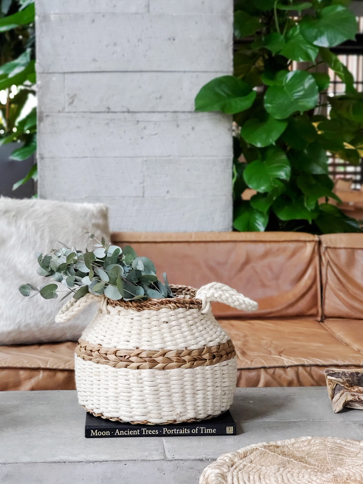 Store towels, blankets, toys, and books in this handwoven basket made from naturally-ethically sourced materials.